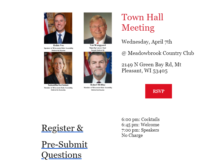 The Racine County Republican Party has confirmed that a number of elected officials will attend throughout the day so we encourage you to come out and visit us multiple times to see who has arrived at to discuss the issues of the day.